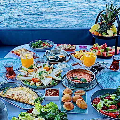 Hem göze hem damağa hitap eden bu lezzet şöleni, taze ve özenle seçilmiş malzemelerle hazırlanıyor. Sıcacık çaylar yudumlanırken, Boğaz'ın huzur dolu esintisi eşliğinde keyifli sohbetler sizleri bekliyor.